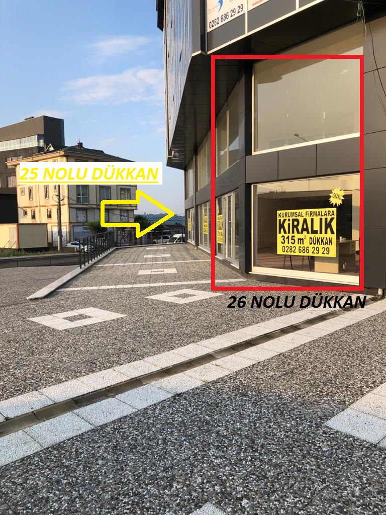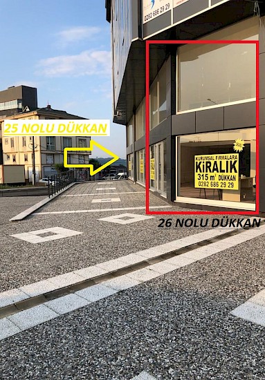 26 Nolu dükkanın net büyüklüğü 315 m2, yükseklik giriş 2,60 cm , asma kat 2,30 cm , cephe uzunluk 20 metre'dir.